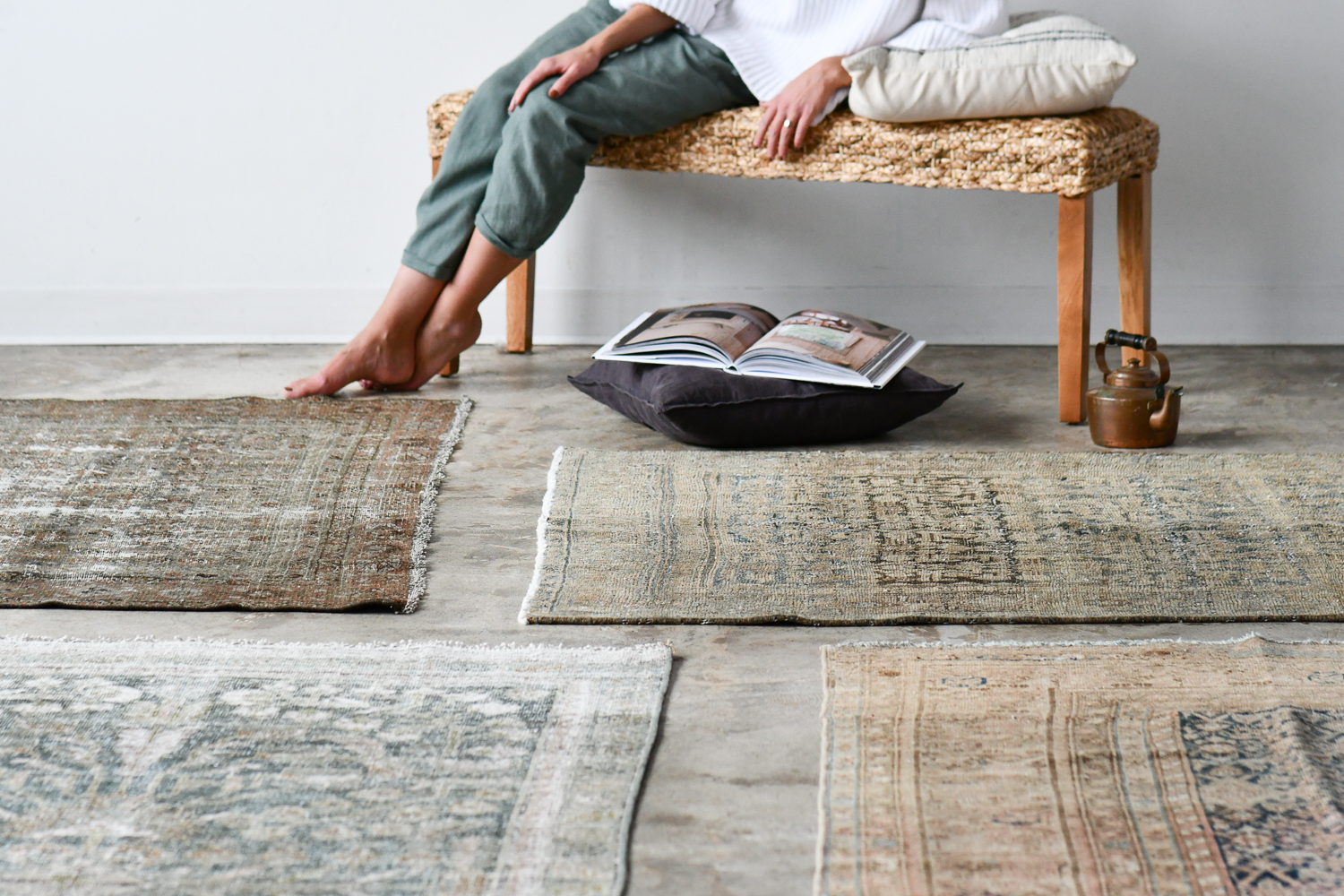 Over time, Hoyler developed a preference for these worn, softened color palettes often featured in West Coast designs, but she struggled to find them locally, so she began sourcing them on her own. With help from a local mentor and former Smithsonian lecturer—and after years of expensive trial-and-error—Hoyler developed relationships with a handful of overseas rug merchants from whom she now sources authentic oriental rugs of unquestionable quality.