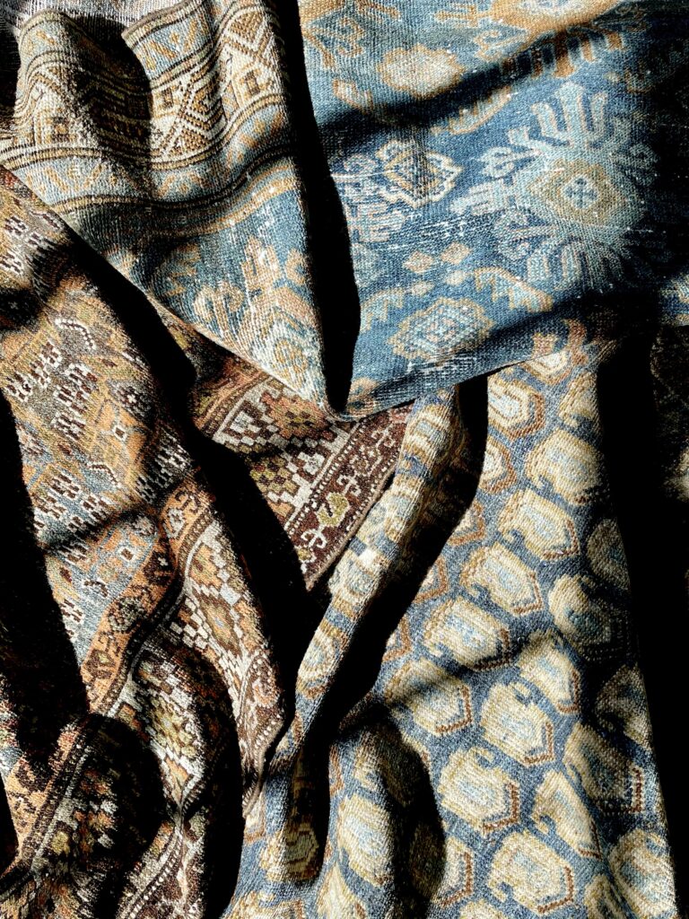 After months of obsessively studying design books, interior movie sets, and designer-curated Pinterest boards, it was a casual estate sale in New England that prompted her eureka moment. When she stumbled upon a beautiful, blue-and-brown Persian Shiraz scatter rug, her appreciation for vintage, one-of-a-kind textiles was ignited.