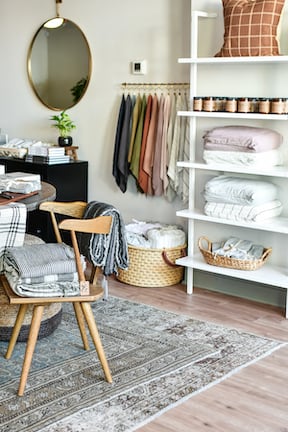 Sanabria is known for seamlessly blending old with new and designing spaces that are truly family-friendly while honoring a home’s architecture. She selected many of the stores’ brands as “Partners with Purpose” — each being a small business that represents an important cause including eco-friendly and cruelty-free items, naturally-sourced products, women-owned companies, and those with strong charitable components. Such brands include Apotheke, Cultiver, Heddle & Lamm, Jaipur Living, Freres Branchiaux, Fair + Simple, Passerine, Poppy & Pout, Sunday Candle Co., Second Story Honey, and Jungle & Loom.
