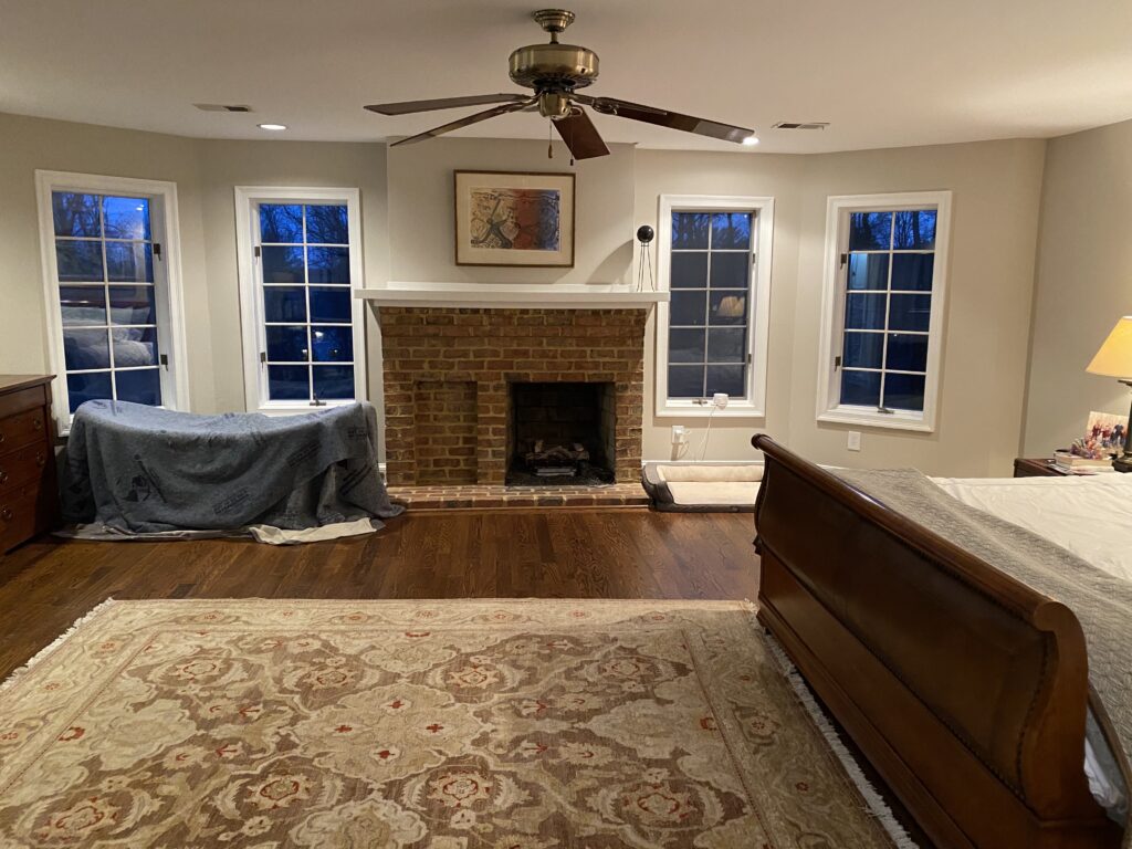 When we first moved into our house, the shower in our primary bath had multiple leaks. The old faucets and plumbing required visits by three different plumbers before finally a fourth sourced the issue, and we were able to purchase the correct valve that would stop the leak (the first three threw up their hands at the old/fancy/European faucets and controls). We were not able to use our shower for the first month or so we lived here, which became the catalyst to remodel our bathroom. Also, our bedroom was poorly lit and had a very outdated and off-center fireplace. My husband and I wanted to address those issues at the same time we renovated the bathroom.