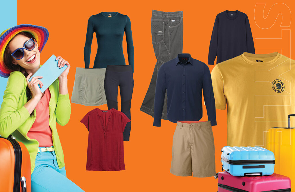 Also important in choosing pieces is packability. The clothing that you will need after you arrive to your destination is just as critical. If you’re not wearing your gear, how easy will it be to pack down and stow inside your carry-on, checked bag or backpack? What will be versatile that can pack away easily but also be worn for multiple situations and occasions? And what about shoes, which always take up the most space?