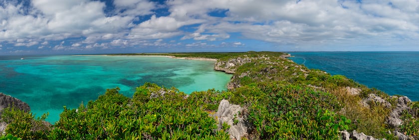 Further afield, guests can visit North and Middle Caicos. These large islands carry a long history as American Loyalists, fleeing the 13 colonies sought to establish plantations here (all of which ultimately failed), and the Taino Indians sought refuge in the cave systems of Middle Caicos. Through the work of the Turks & Caicos National Trust, guests can visit both the Indian Caves and Wades Green Plantation to learn about the history of the islands. One of the highlights of any trip to North and Middle Caicos is the stunning drive across the causeway that connects the two pieces of land. It traverses some of the most electric blue waters you will ever see. Shortly after the causeway you will find the incredible, elevated, natural rock formations of Mudjin Harbour and Dragon Cay. One of the most beautiful places in the Turks & Caicos Islands.