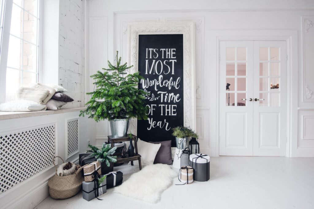 To add a touch of color to your neutral Christmas décor, add some green. You can frame your doorways with greenery, hang boughs from the stair railings, and incorporate mini potted pines, cedars, and cypress. Best of all, when you decorate with holiday greenery, your home will smell amazing!