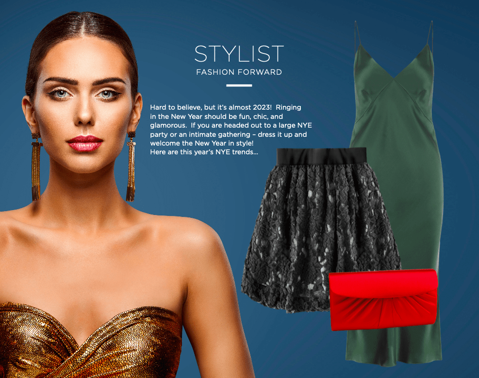 Yes – red is spilling over into hot NYE fashion trends. It’s bold and sexy and rings in the New Year with a certain amount of je ne sais quoi.