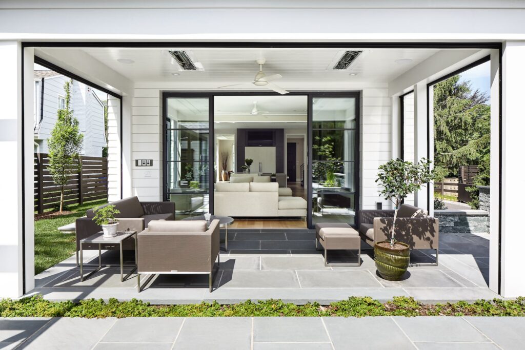 “We’ll ask about motorized shades/blinds/screens pretty early on as we often need to plan for them in the framing of the house,” says Olson. For motorized blinds, Olson says he often uses Lutron or Hunter Douglas, but has also started using J Geiger, as well as motorized screens by Phantom Screens or Fenetex.