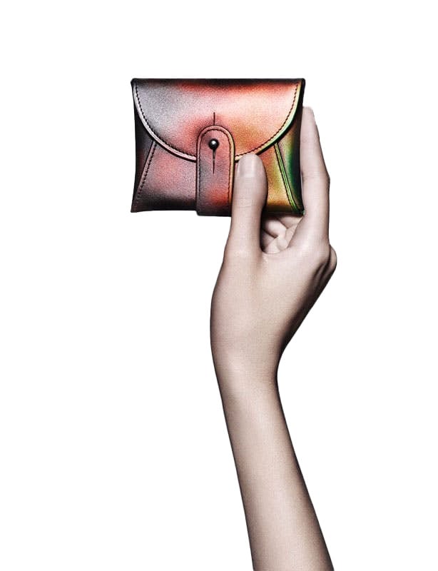 The resulting line of luxury items for Selfridges respond to things like air pressure, body temperature, touch, wind, and sunlight. An Italian alligator-skin shoulder bag for instance saw environmentally-responsive ink shifting from black in the winter, to red in the spring, blue in the summer and green fading to red in the autumn.