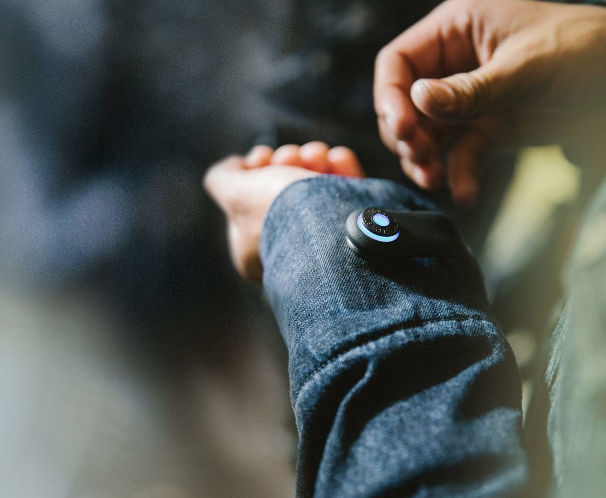 The Levi’s Commuter X Jacquard by Google Trucker Jacket is a piece of wearable technology designed for urban cyclists. Conductive yarn is weaved into the left cuff enabling touch interactivity so users can tap, swipe or hold to fulfill simple tasks like changing music tracks, blocking or answering calls or accessing navigation information (delivered by voice).