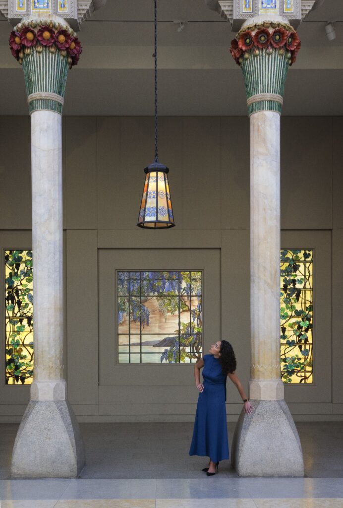 Oh, my goodness, I don’t know if I can. I would say the architectural objects at the Morse Museum in Winter Park, Florida, from Laurelton Hall, the country estate that Louis designed and built in Oyster Bay, Long Island. The Loggia from Laurelton Hall is in the courtyard of the American Wing at the Met. I love to stand under the lanterns and look up…to think my grandmother and family were surrounded by these beautiful elements and objects.