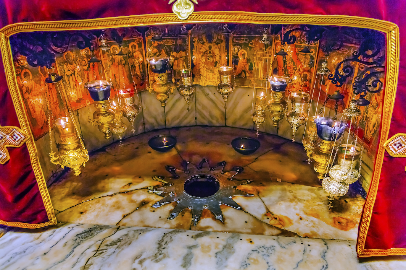 Once past the guard, steep stairs lead down into the cave, where the manger was located. Jesus’ birthplace is marked with a star. Here is one of the most holy sites in the Christian religion. And, from where Christmas sprang.