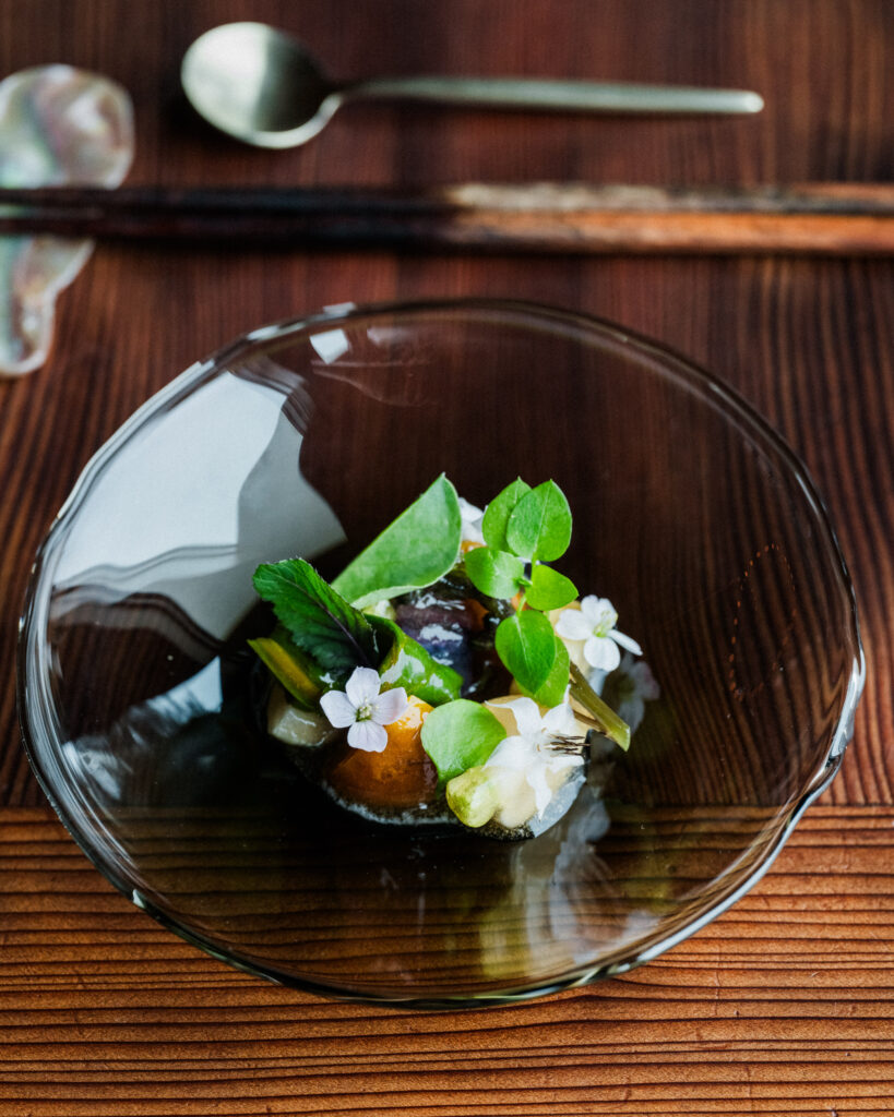 This moodily-lit, chef’s table style restaurant was awarded the Michelin Green Star, taking Tokyo’s Green Star restaurants to 11 ‒ the most sustainable fine dining restaurants in a single city. Chef Tatsuya Noda refers to the dining room as a “kitchen space”, creating dishes passed down through his family, such as his grandmother’s home pickles and his mother’s roasted rice, for just a small group of diners. Noda’s “Garbage Soup” was singled out by Michelin as an exceptional waste-preventing dish; another low-waste initiative includes creating dishes from sturgeon fish, which are usually discarded after their caviar is removed.