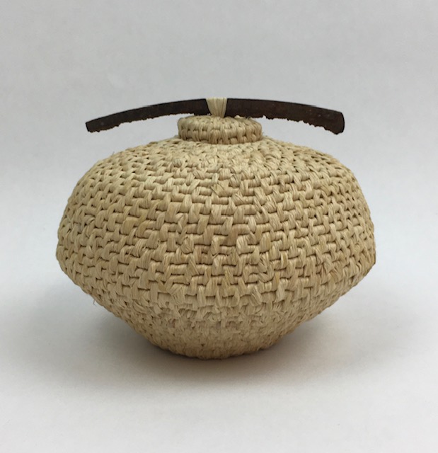 JE: I almost exclusively use raffia. I like to dye the raffia with iron, coffee or tea, and have been experimenting with some other natural dyes, but I’m not a man of many colors. I was asked to participate in a recycling show and recently wove plastic shopping bags into a desk set. But I prefer raffia.