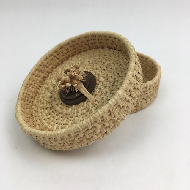 JE: Actually, there is nothing in particular. My raffia and needle are usually next to me. It’s rare that I watch anything on TV or listen to music without weaving. It’s an incredibly long process. A large basket can take weeks, which is why most of the things I make are small and intricate.