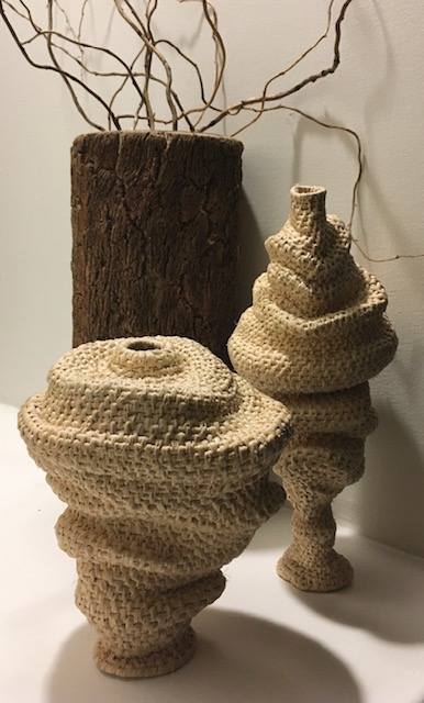 My weavings adhere to general design principles rather than one particular style or period. Although, Native American basketry has always been my favorite, even as a child. Most of the shapes are typical basket shapes, some of the recent work I’ve been experimenting with are very uneven and untraditional shapes. I recently made several resembling tornadoes or cyclones.