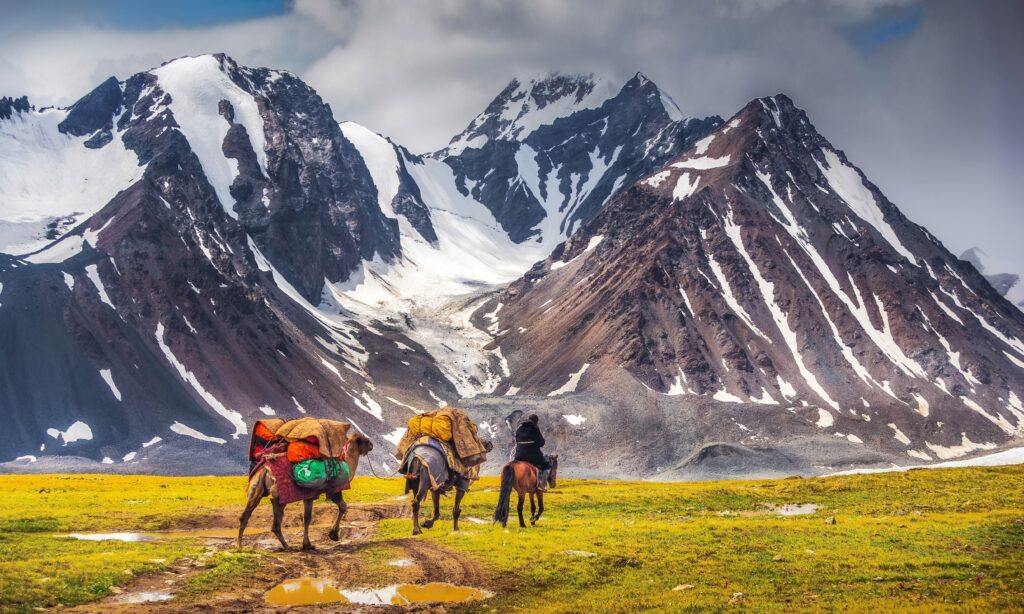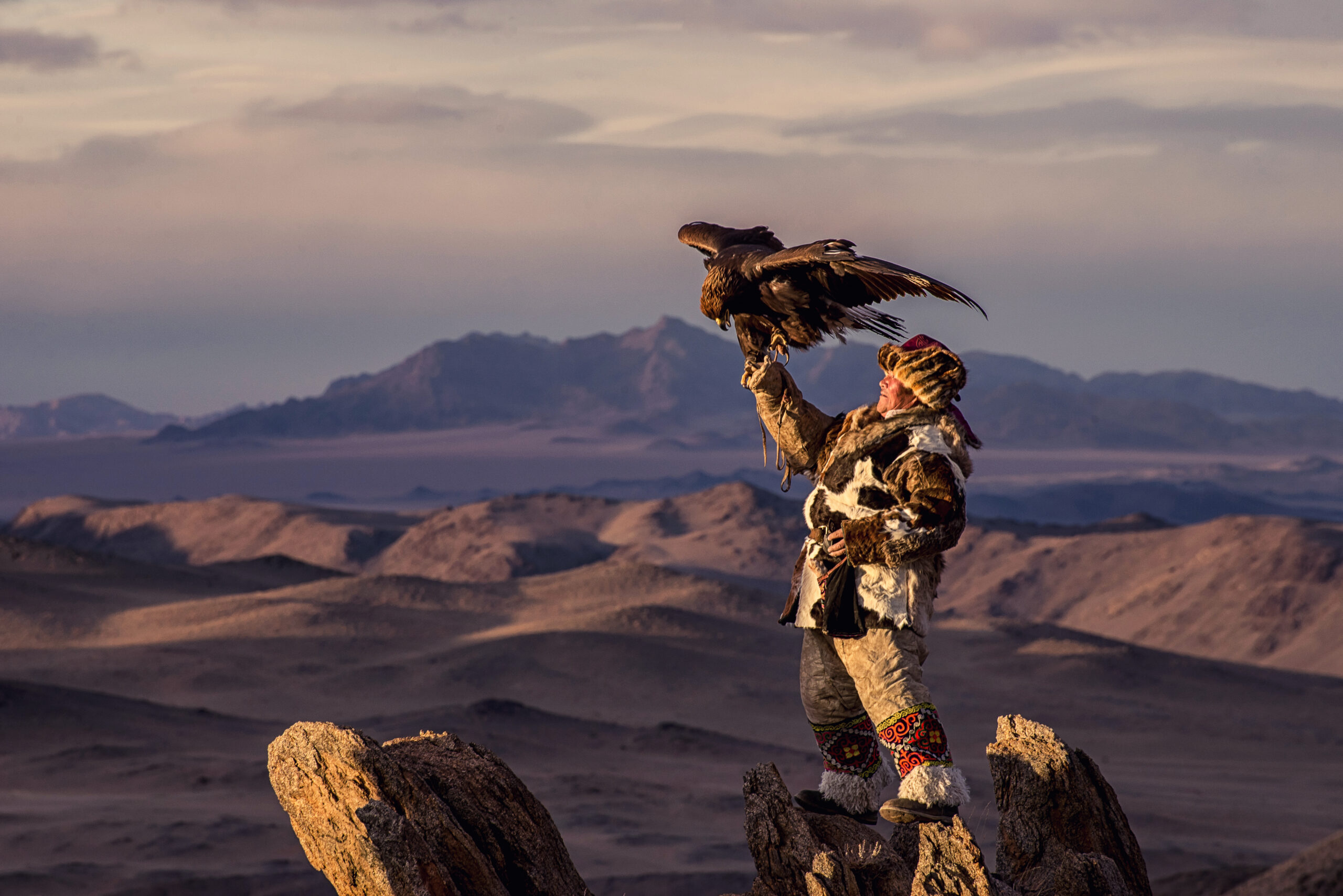 The Altai Mountains – These towering mountains in the west of Mongolia are home to the Kazakh eagle hunters, whose traditional hunting with trained golden eagles is a practice that has been passed down through generations.