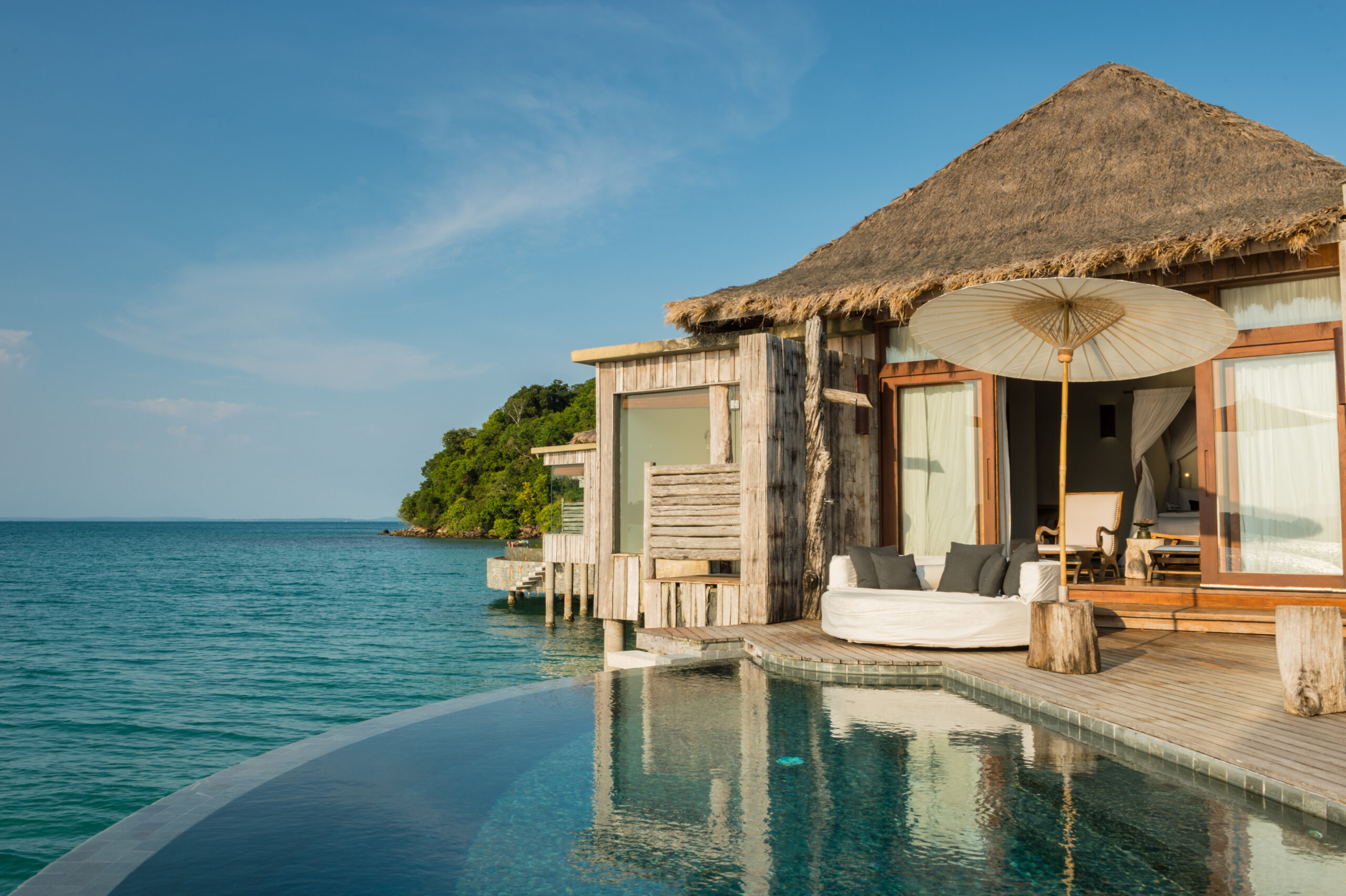 Tucked away in the untouched Koh Rong Archipelago, Song Saa offers a rare blend of castaway charm and high-end design. Its overwater villas feel more like beachfront sanctuaries—with reclaimed wood, private pools, and open-air showers overlooking the Gulf of Thailand. A stay here means barefoot elegance with a strong sense of sustainability and community.