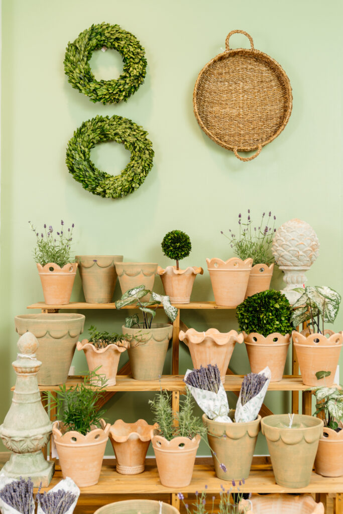 Outdoor holiday decorating typically begins in November and all the fresh pine tips and pinecones create beautiful and natural outdoor containers that will last through the holiday season; however, a pine garland on a mantel or staircase will start to dry when inside for too long. No one wants to redecorate their mantel before Christmas even arrives. I love to use magnolia stems on the mantel over my fireplace. Yes, they begin to dry within a couple of weeks inside in the heat, but they soften to a sage green and still look nice as Christmas nears. I’ll tuck in some glittery gold accents like cones or lotus pots, as well as add a few low taper candles for really pretty and natural mantel decor.