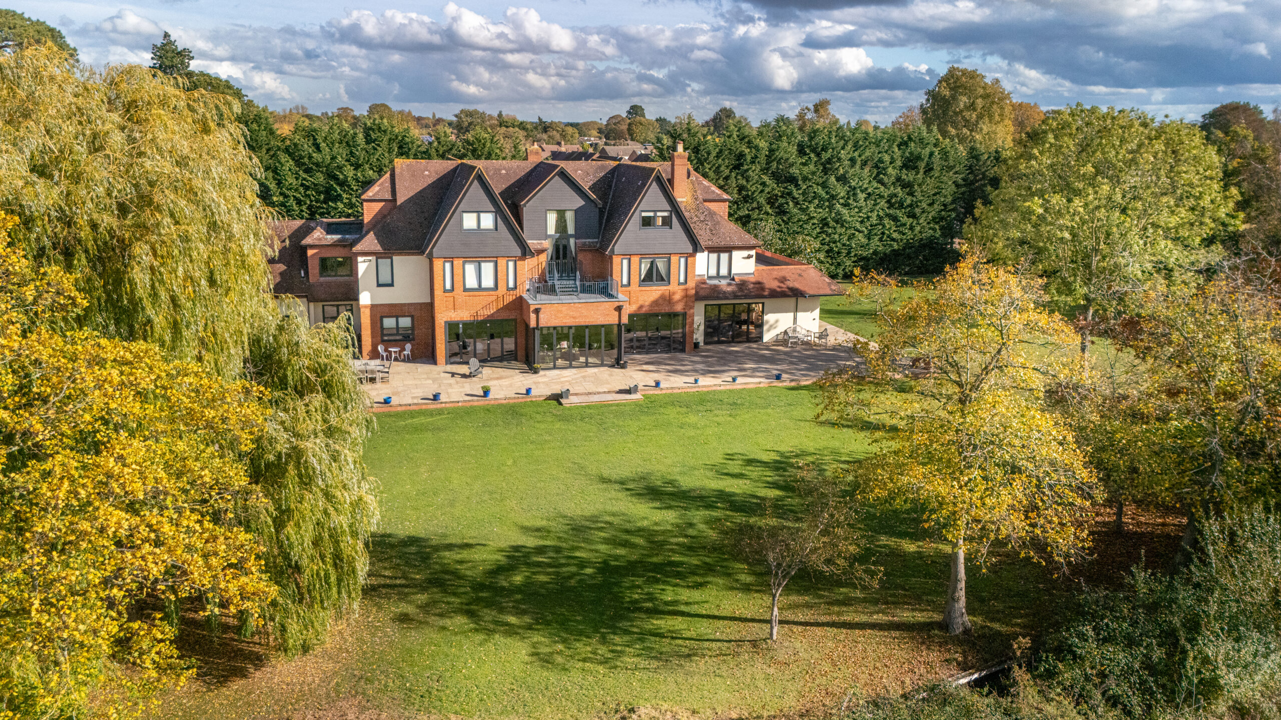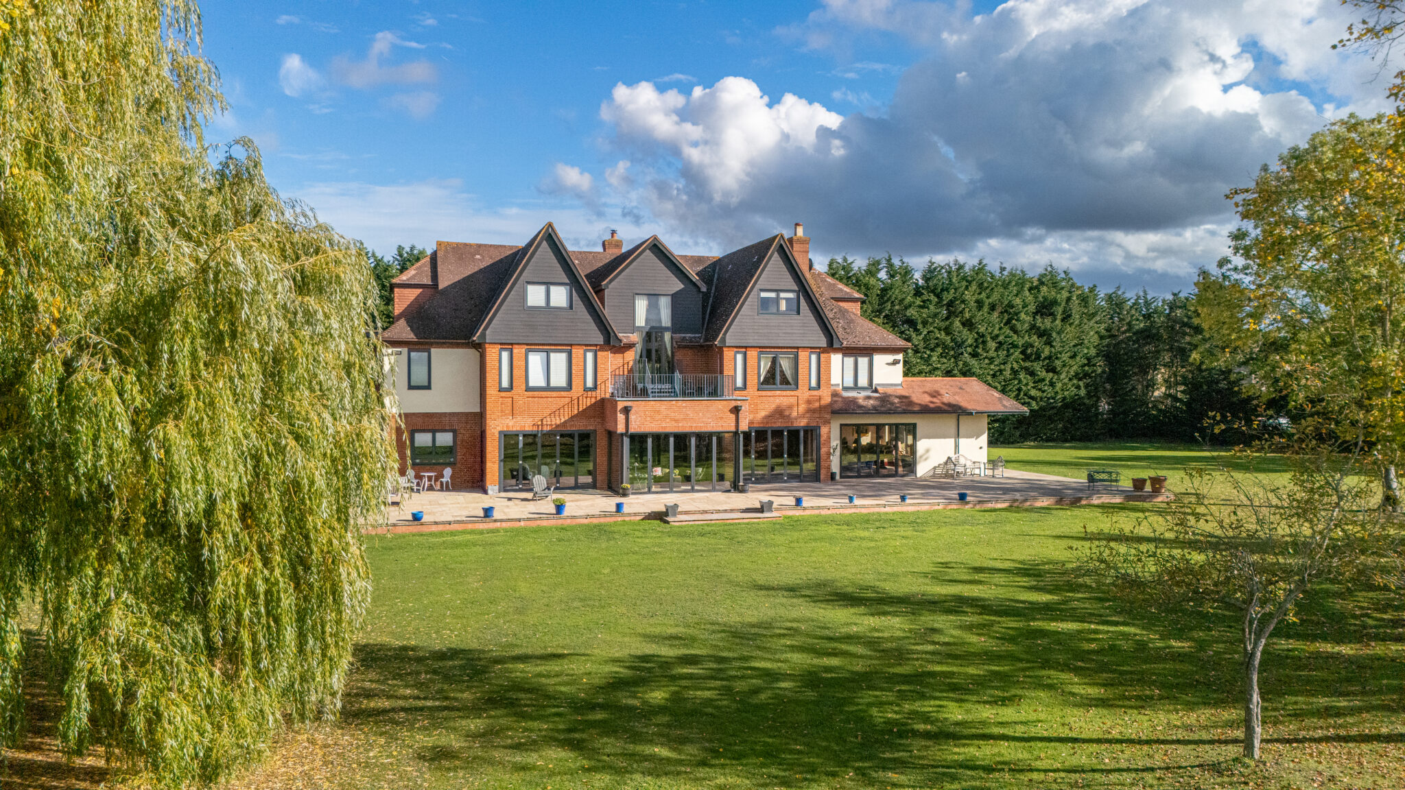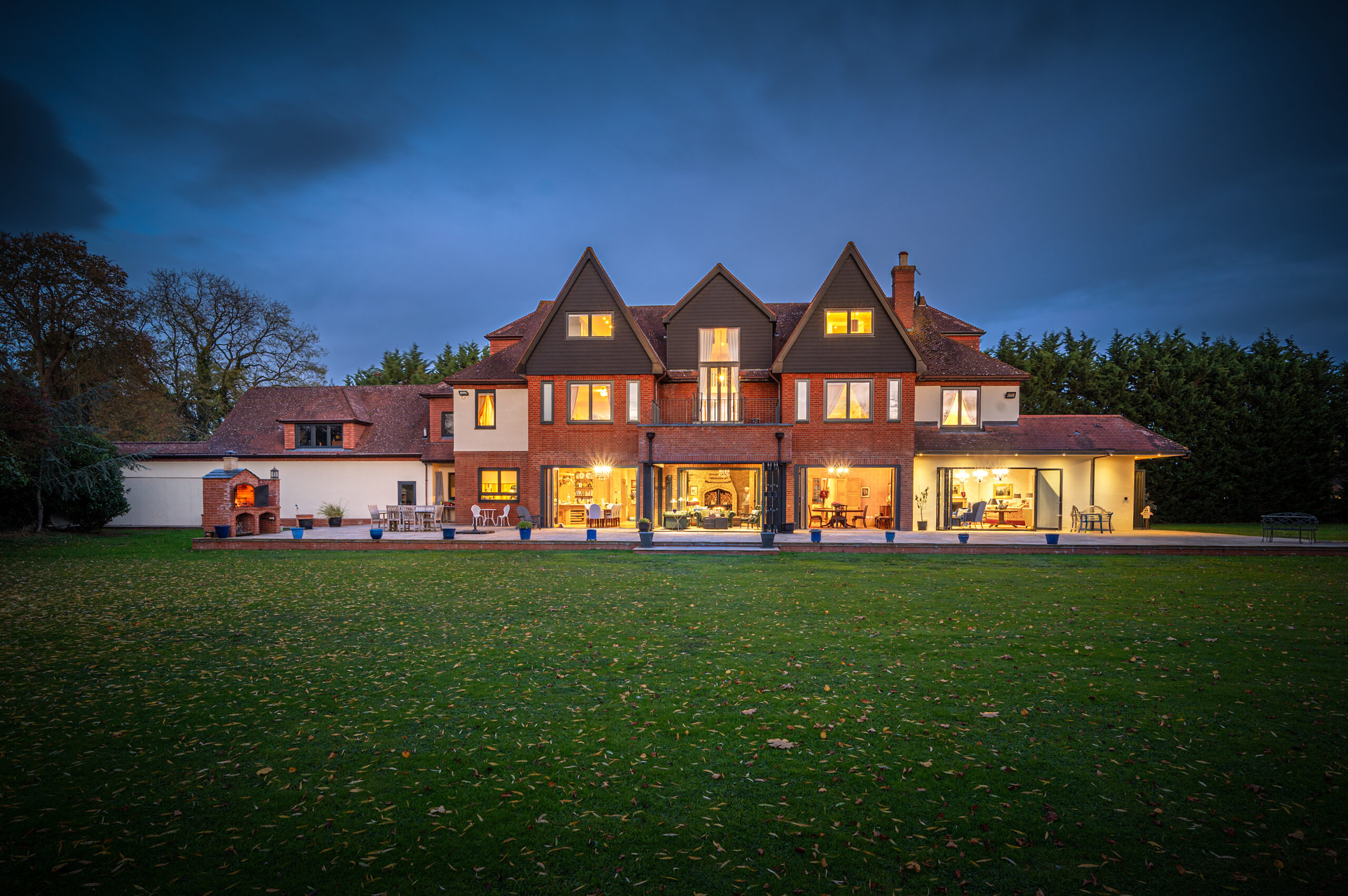 “You see,” begins Hussein, “the grounds are surrounded by open fields in the back. There is a natural feel to them because we have lots of old trees. We have an oak tree that is not less than 300 years old. There are a few of them. We have a fantastic willow tree that is really a big feature in the garden. Scottish pines that are very high. I installed discreet lighting throughout, so at night you can switch the lights on and all the trees are lit from within. It looks amazing. Especially in the summer.”