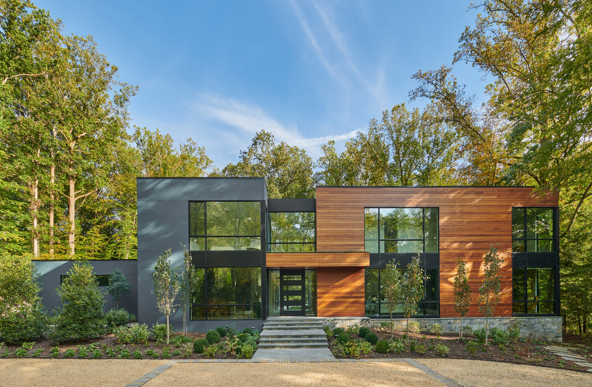 With home designs that exude a warm and livable contemporary aesthetic, Mark Kaufman, principal, GTM Architects, www.gtmarchitects.com, created a custom home with a very modern look, as well as one that allowed for aging in place for these Bethesda, Maryland homeowners. “They also wanted to feel like they didn’t need to travel to a vacation home,” he says, because every amenity is built right into the property. “They wanted it to feel like a resort with a pool, spa, outdoor shower, screened porch, and outdoor kitchen.”