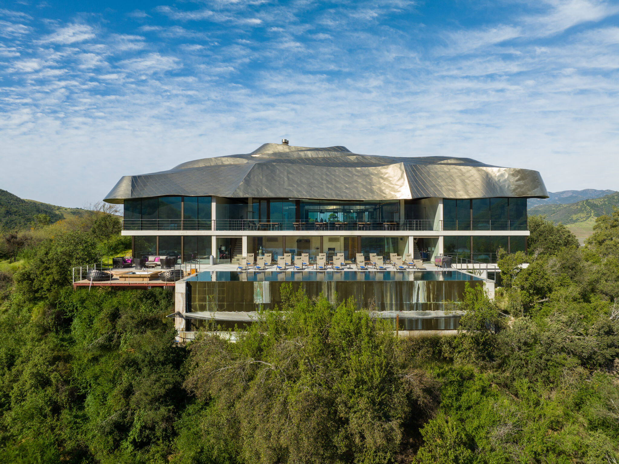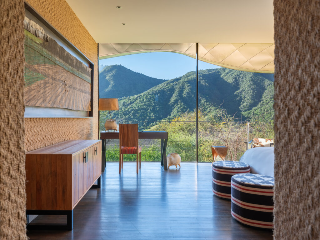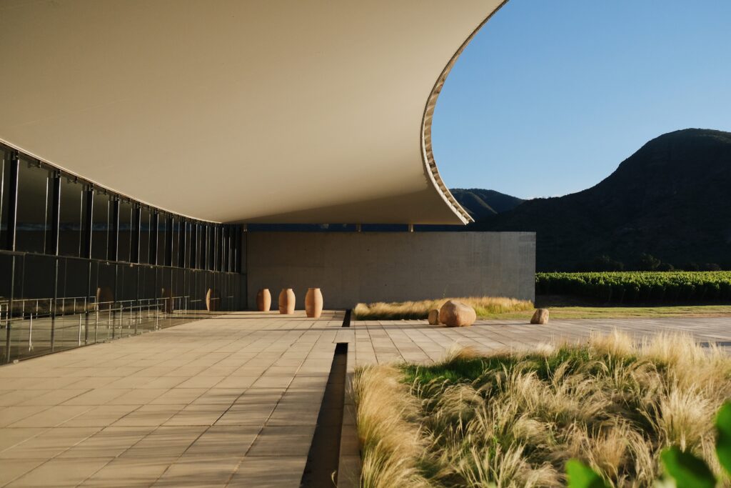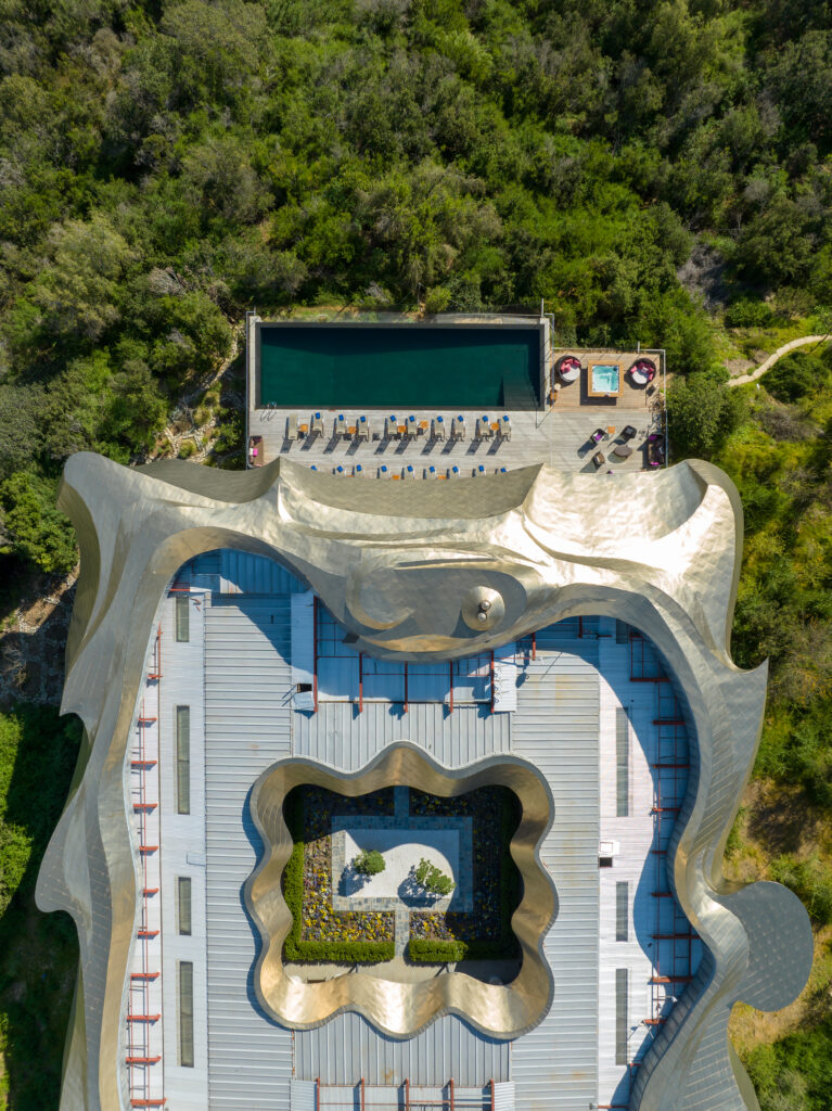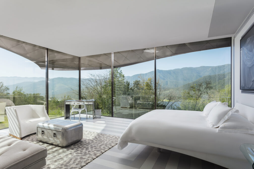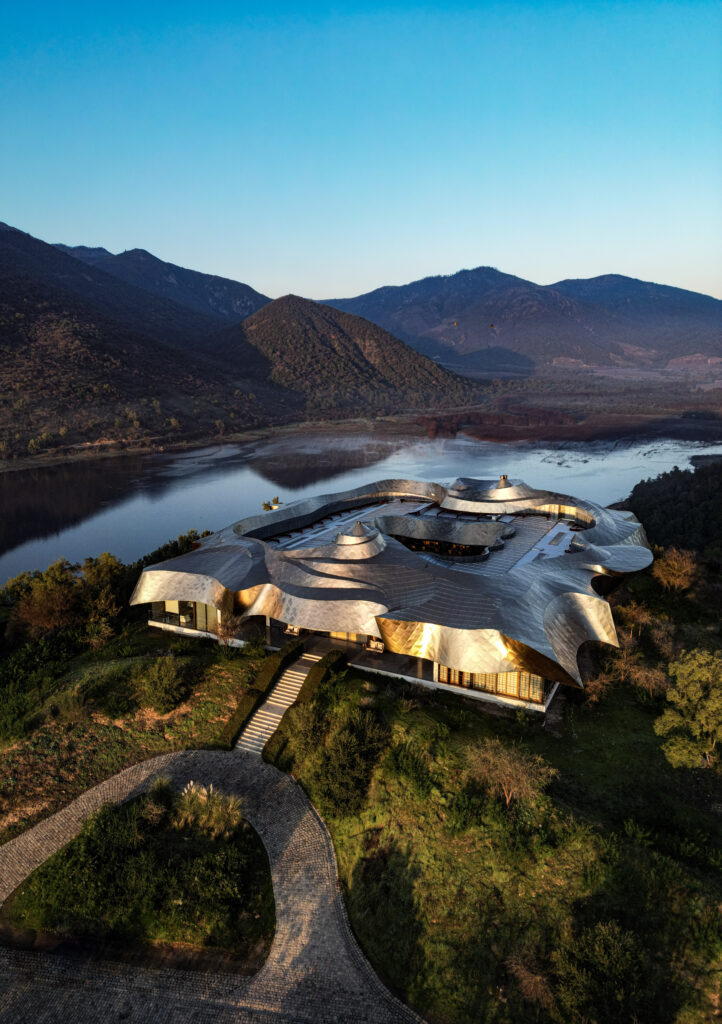 Set in the golden Millahue Valley within Chile’s Cachapoal wine region, Vik Chile is a destination that blends bold architecture, art, nature, wine and gastronomy in seamless harmony. The property sits atop a hill in a private nature reserve of around 4,300 hectares with vineyards, rolling natural landscapes and Andes peaks forming a breathtaking backdrop. The hotel, completed in 2014, was designed by architect Marcelo Daglio while the winery was created by Smiljan Radic together with Loreto Lyon. Glass walled bungalows and suites are individually themed, each one unique, and artworks by Roberto Matta and Anselm Kiefer are integrated into shared spaces to underscore the creative spirit of the place.