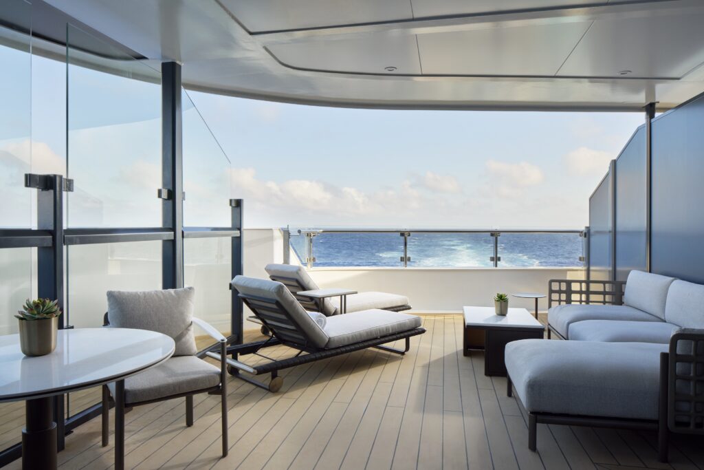 The design philosophy is Scandinavian-modern meets coastal chic. Airy spaces, sweeping ocean views, warm neutral palettes, and textures inspired by beach cliffs, driftwood, and sun-dappled marinas abound. There aren’t towering atriums. No cavernous dining halls. Instead, the yachts feature refined lounges, serene nooks, and terraces that blur the line between indoors and sea breeze.