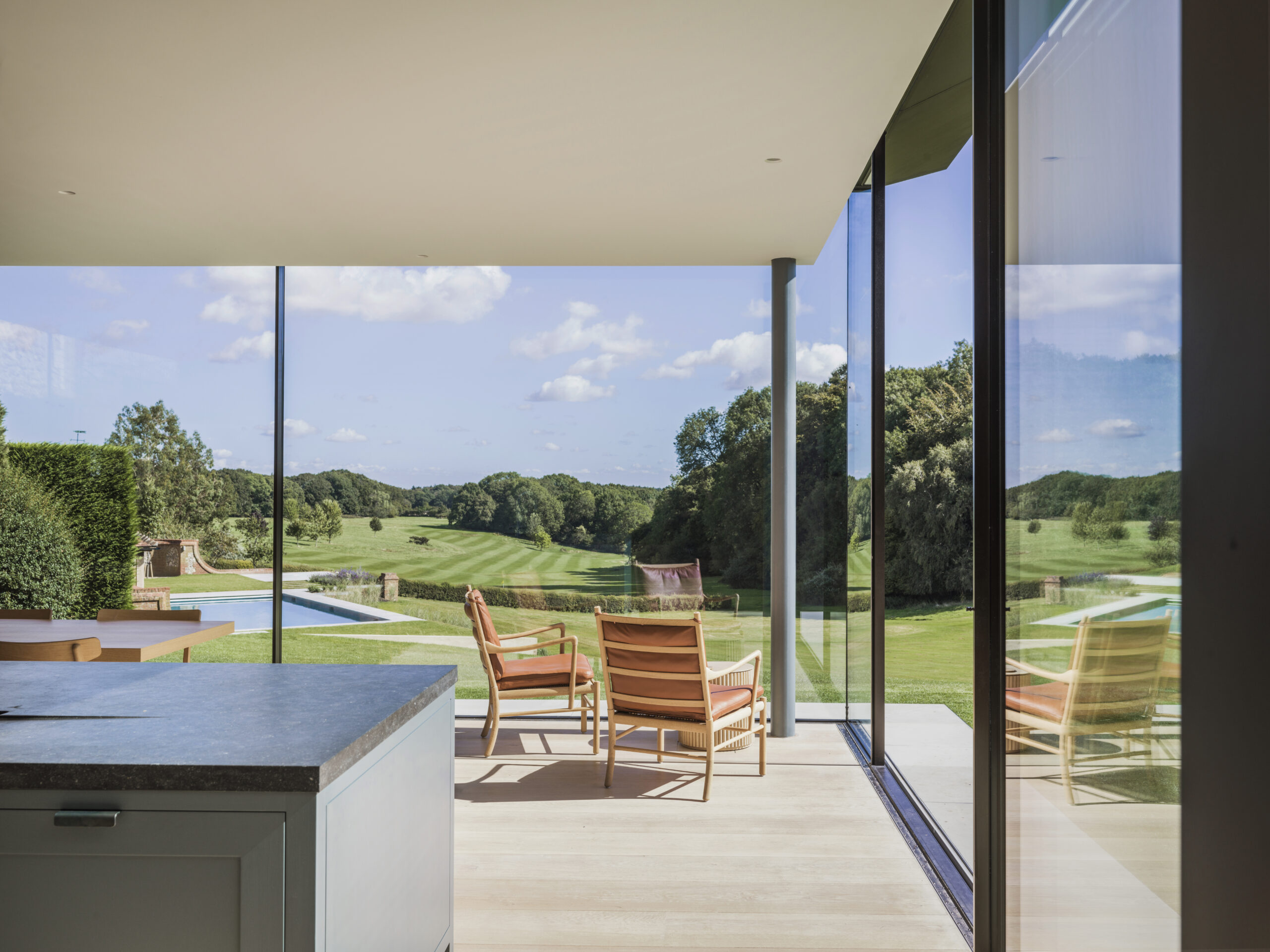Working in the British architecture space, he also understands historic design and uses his ability to move that element of history into present styles. As an example, Phillips mentions courtyards, drawing on centuries-old architectural precedents in the United Kingdom. “A lot of our contemporary country houses have the courtyard as a big theme,” he says. “It goes back to Oxbridge colleges, or castles centered around an open space.”