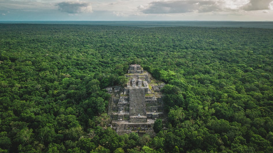 20 miles from the Guatemalan border, is the ancient Mayan city of Calakmul. While most of the ruins on this list are easily accessible, Calakmul has a more remote location deep in the jungle of the Yucatan Peninsula. Like Coba, Calakmul is thought to have a large population of about 50,000 people. It’s believed that construction of this huge city started around 550 B.C. Over 6,700 buildings have been discovered here, with several pieces remaining mostly intact. Some of the intricately carved stone slabs still have their original pigmentation. You can climb its steep steps for stunning, unforgettable views over the surrounding jungle-scape.