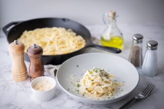 One-Pan Baked Champagne Cream Sauce Fettuccine with Truffle Oil